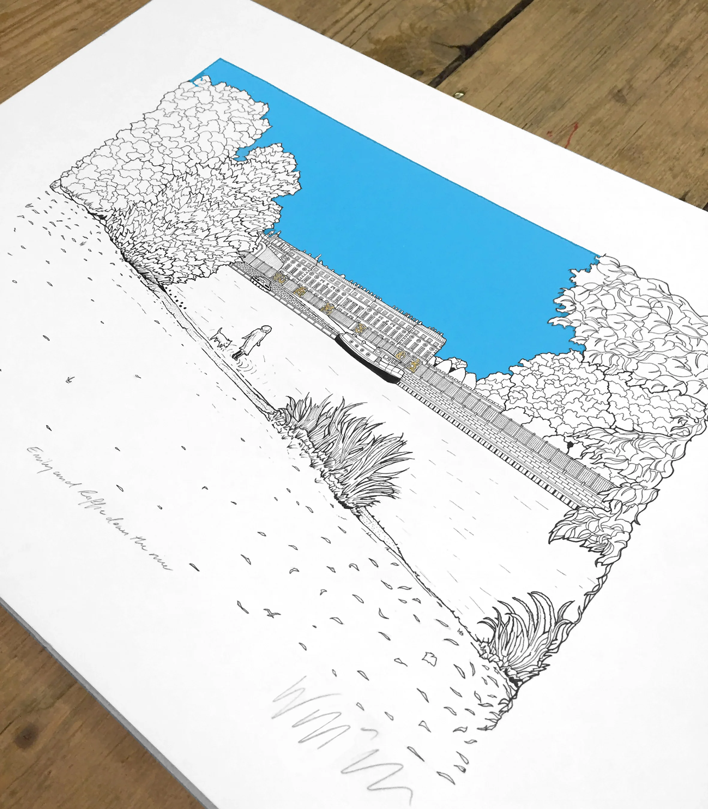 I was asked to illustrate a scene of which included the Eiffel Tower and surrounding area of Paris. The final piece was all hand-drawn and I screen printed a single layer of gold ink across the sky. The detailing which forms the leaves of the Sycamore Tree was a particularly enjoyable part to illustrate.